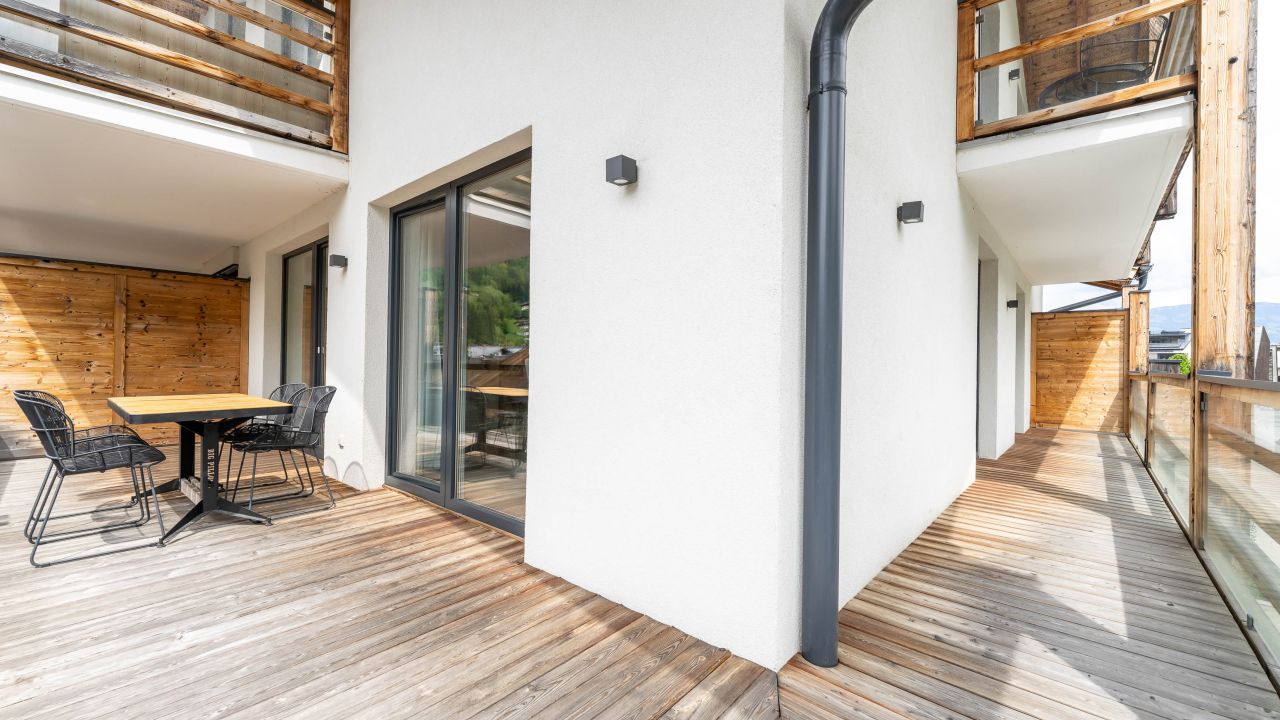 Die Doppelbetten in den beiden Schlafzimmern der Suite, sowie die integrierte Schlafcouch im Wohnbereich bieten Platz für bis zu sechs Personen. Es erwarten Sie zwei Badezimmer mit Dusche oder Badewanne und WC und ein offener, hochwertig möblierter Wohnbereich mit einer modernen Küche. Die Holzelemente in der Suite lassen Sie den alpinen Lifestyle spüren. Der gemütliche Esstisch und der private Balkon sind der perfekte Platz, um ein gutes Glas Wein zu genießen und einen spannenden Tag in den Bergen Revue passieren zu lassen.